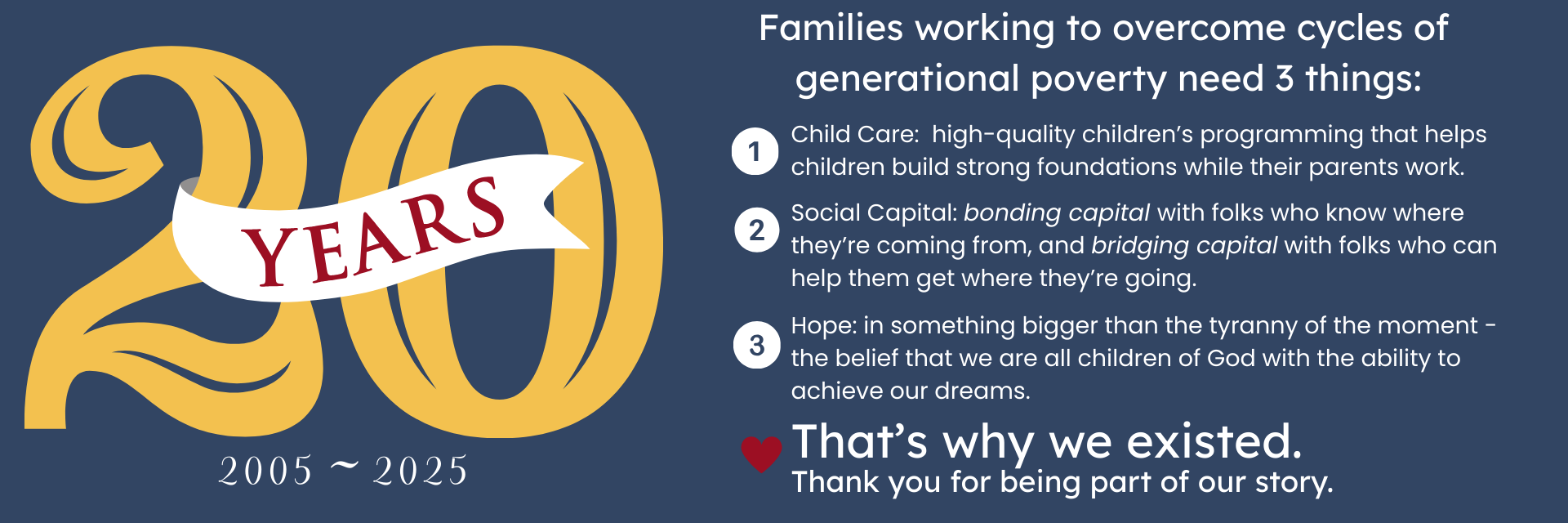As Fortress’s Executive Director, I’m proud of the legacy we’ve built and the lives we’ve been privileged to change. Since 2005, Fortress has been committed to ensuring that low-income families have access to high-quality children’s programming. We’ve blended social-emotional learning with developmental milestones, Kindergarten readiness, literacy initiatives, and imaginative play to give kids the best possible foundations from which to grow. We instilled the belief that we are all children of God with the ability to achieve our dreams. Because consistent, dependable child care was available, dozens of parents were afforded the opportunity to complete their education, obtain job skills training, and to establish work histories that propelled them toward long-term stability, ultimately breaking cycles of generational poverty. Children have always been the heart of Fortress, and it has been our greatest honor to grow alongside them. We will remain eternally grateful for the care our community entrusted to us.